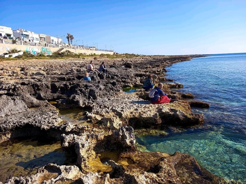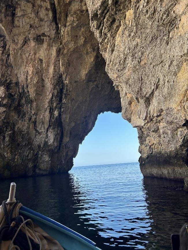 A csütörtöki napon is meditációval indítottuk a reggelünket. Megnéztünk a tegnapi napon elkezdett sajátélményű konfliktus feldolgozásból 2 jelenetet, köztük a sajátunkat is. Érdekes volt látni, hogy ahány ember, annyi gondolkodásmód. Ezt követően egy „Határhúzós szerepjátékot” játszottunk, amelyben gyakoroltuk a határok kijelölését és kommunikálását asszertíven. Mindenki rájött, hogy a szerepekből adódó „elnyomás” egy szorongást is kelthet. Ezeket az „elnyomásokat” megpróbáltuk feltárni, hogy mikor nem tudunk nemet mondani. Az „elnyomások” lettek a mi rendőreink a fejünkben, amelyet párokban meg kellett valósítani. Megbeszéltük mit mondhatnak ezek a rendőrök, miken mehetnek keresztül és megpróbáltuk megformálni őket olyanná, amikor nem „elnyomnak” minket, hanem támogatnak. A nap zárásaként egy „Az én történetem” címmel készített mindenki egyénileg egy rajzot, gondolattérképet. Mindenki annyit osztott meg az életéből, amennyit szeretett volna. A csapat dinamikája annyira jól alakult a héten, hogy voltak történetek, amelyek könnyeket csaltak a szemünkbe. Nem jutott mindenkire idő, így a következő napon folytattuk ezt a feladatot is. A délutánunkat a Blue Grotto felfedezésével töltöttük, amelyről szerintem elmondhatjuk, hogy az egyik lemaradandóbb élmény marad számunkra. Részt vettünk egy rövid csónakázáson is, amely megmutatta a látványosság apró részleteit is.