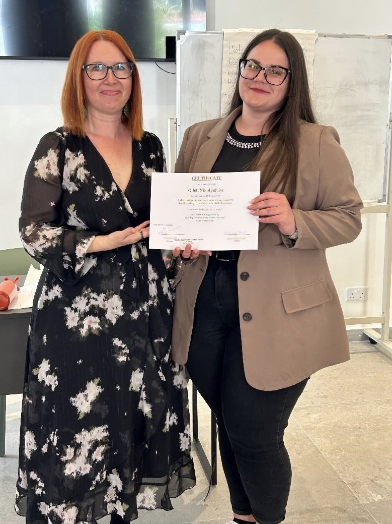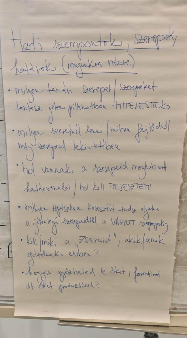 A kurzus mindennap 8:30-kor kezdődött, így a mai napon is. Volt egy rövid megnyitó, ahol megismerkedhettünk a szervezőkkel és a kurzus oktatójával, Benkő Imola Orsolyával. A megnyitó után elfoglaltuk a termünket, ami a héten a „második otthonunk” lett. A csoport tagjaival az ismerkedést egy úgynevezett „Becenév-Alliteráció” játékkal kezdtük. Mindenkinek választania kellett egy olyan melléknevet, ami ugyan azzal a betűvel kezdődött mint a neve. Én az optimista Odettet választottam. Az ismerkedés egy figyelemfelkeltő feladattal folytattuk, ahol két körben kellett állni, volt egy külső és egy belső kör. A résztvevőknek egy érdekes/hasznos dolgot kellett mondaniuk magukról, az úgynevezett szuperképességüket. Egy „Én még sosem” játékkal folytattuk a napot, ahol olyan dolgokat kellett mondanunk, amit még sosem próbáltunk ki, soha nem jártunk ott. Ez is elősegítette az ismerkedést, hogy hasznos dolgokat megtudjunk a másikról. Ezt követte az úgynevezett „Vádlott” játék, amikor egy ember beállt a kör közepére és külső megjelenés alapján pozitív dolgokat mondtak a csoport tagjai, amit feltételeztek a személyről. Ebben a játékban éreztem először, hogy kilépek a komfortzónámból és bemegyek a kör közepére. Rengeteg igaz dolgot elmondtak rólam, ez egy igazi visszacsatolás volt számomra, hogy önazonos tudok lenni. A napot 4 fős kiscsoportokban folytattuk, ahol 3 olyan közös tulajdonságot kellett keresni, ami mindenkire igaz. Ezt követte egy „Státus séta”. Először úgy kellett sétálni, mint aki a legmagasabb, legfontosabb rangú személy, majd pedig egy alacsony státuszban, mint aki a legjelentéktelenebb. Ezt követően egy ”Fel és le” nevű játék következett, ahol ezeket a státuszokat megszólítottuk. Az egyik fél magas státuszból szólt, a másik pedig alacsony státuszból. A napot a „Menedzserem” feladattal zártuk, ahol párokat kellett alkotni. Kérdéseket kellett megválaszolni mindenkinek, majd megosztani a pároddal. A párod feladata az volt, hogy menedzseljen téged, mintha egy állásinterjún lennél és miért válasszanak téged. Nekem a legjobban ez a menedzseres feladat tetszett.
