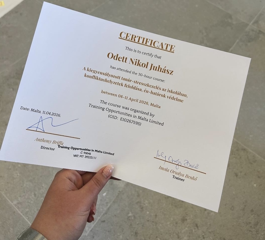 Az Erasmus mobilitás első két napja az utazással és a megérkezéssel telt. A kiutazás zökkenőmentesen zajlott, majd Máltára érkezve elfoglaltuk a szállásunkat St. Paul’s Bay városában. Málta a Földközi-tenger közepén elhelyezkedő szigetország, amely gazdag történelmi múlttal és sokszínű kulturális hatásokkal rendelkezik. Már az első benyomások alapján is jól érzékelhető volt a mediterrán életérzés: a szűk utcák, a világos színű épületek és a tenger közelsége különleges hangulatot teremt. A város Málta egyik népszerű tengerparti települése, amely nyugodt, mégis élénk környezetet biztosít az itt tartózkodók számára. Az első napok fontos részét képezte az új környezethez való alkalmazkodás: megismerkedtünk a helyi közlekedéssel, a mindennapi lehetőségekkel, valamint a környék adottságaival. A megérkezést követően azonban a lefoglalt szállás nem bizonyult megfelelőnek tisztaság szempontjából, ezért új szálláslehetőséget kellett keresnünk. Ennek megszervezése és az átköltözés a második nap jelentős részét kitöltötte. Bár ez váratlan helyzetet jelentett, sikerült gyorsan és rugalmasan megoldani a kialakult problémát. Az első este egy mexikói stílusú étteremben vacsoráztunk, ahol nagyon jó hangulatban telt az idő, és az ételek minősége is kiemelkedő volt. Ez a közös élmény oldotta a nap fáradalmait, és hozzájárult a csapat pozitív hangulatához. Másnap, az új szállásra való átköltözést követően megnéztük a tengerpartot, ahol elfogyasztottunk egy fagylaltot, majd késő délután ismét visszatértünk ugyanebbe az étterembe vacsorázni. Az első két nap így főként az alkalmazkodásról, a helyzetkezelésről és az új környezet megismeréséről szólt. A nehézségek ellenére a csapat összetartása és együttműködése segítette a helyzet rendezését, és végül stabil alapot teremtett a további szakmai programok megkezdéséhez. Összességében a megérkezés eseménydús volt, de hasznos tapasztalatokat adott a rugalmasság és a problémamegoldás szempontjából is.